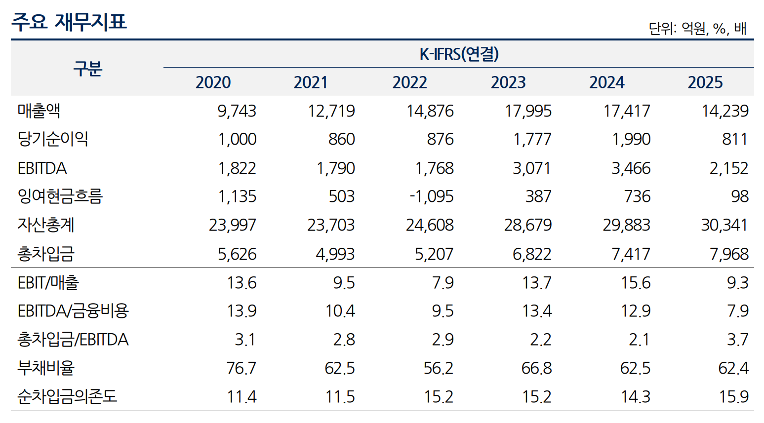 지난 2022년 영업이익률(EBIT/매출액)은 7.9%에 불과했지만, 2023년 13.7%, 2024년 15.6%로 개선됐다. 지난해에는 9.3%를 유지됐다.